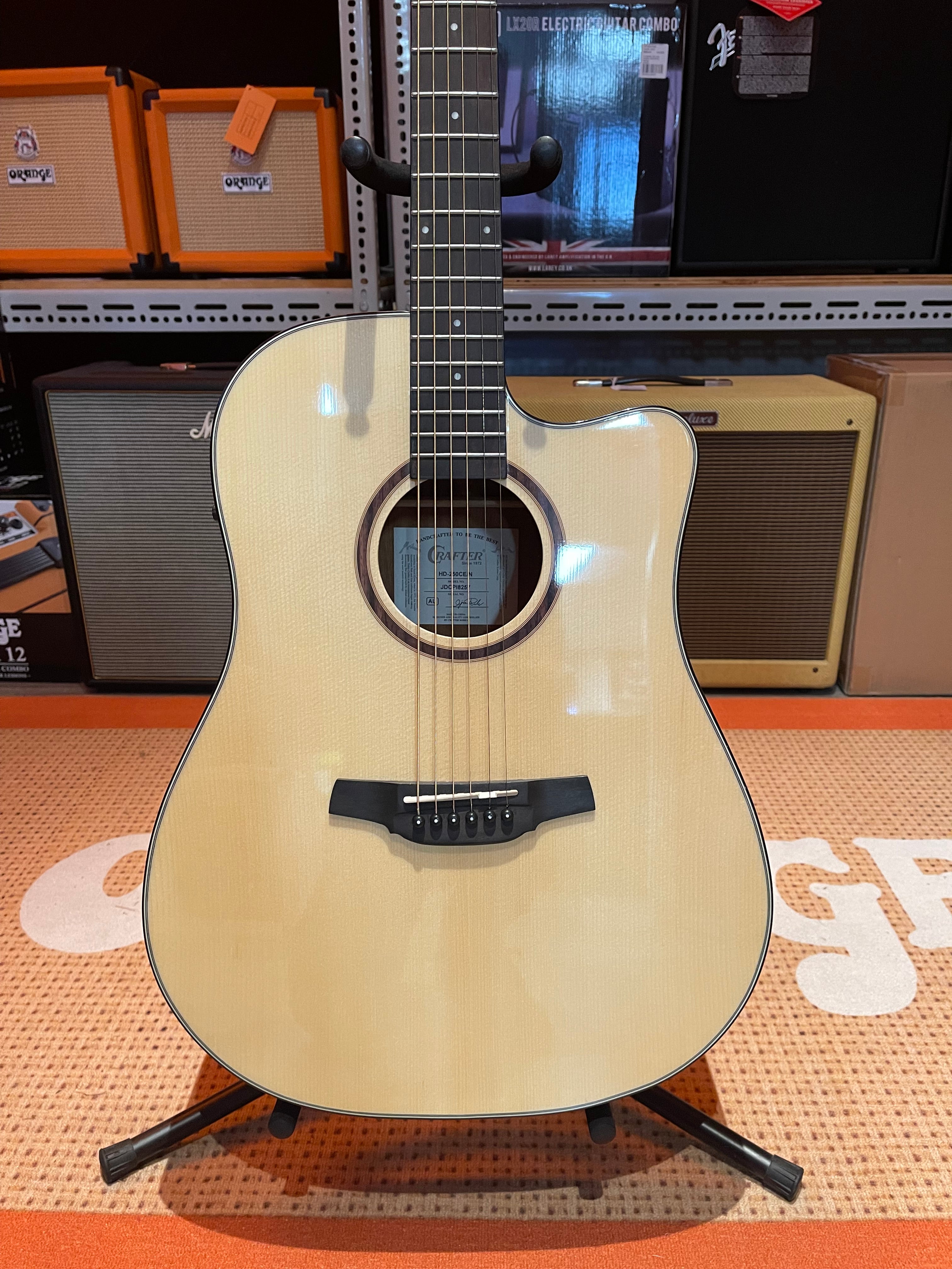 MODEL HD-250ce/NBODY SHAPE DreadnaughtTOP Solid European SpruceBACK & SIDES Layered Mahogany Back & SidesNECK MahoganyFINGERBOARD & BRIDGE RosewoodFINGERBOARD INLAY Dot Position MarkSOUNDHOLE INLAY Rosewood Soundhole InlayTUNERS Crafter TunersELECTRONICS PL-T NV GOLD EQ SystemSTRINGS D'Addario EXP-16 (.012 -...Sale price $399.00Regular price $499.00 -