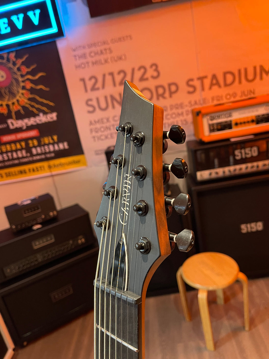 Carvin designed this model from the ground up with the 8-string guitarist in mind. An extended scale 27" fingerboard with 20" radius, new active A80 pickups, comfortable deep arm cut and belly cut and many more features make the DC800 the 8-string guitar players have been waiting for.