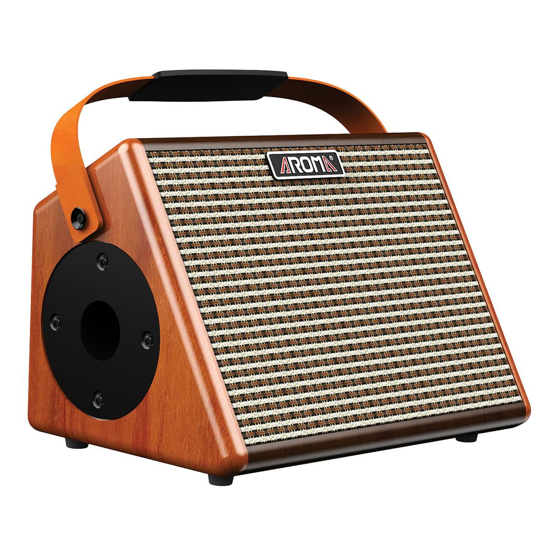 The Aroma AG-26A 25W Acoustic Guitar Rechargeable Amplifier features 26W of power, independent guitar and mic channels, and Bluetooth 4.2 functionality. This rechargeable acoustic guitar amp features a Li-ion battery, and carry handle, and is mountable on a speaker pole for extra projection.