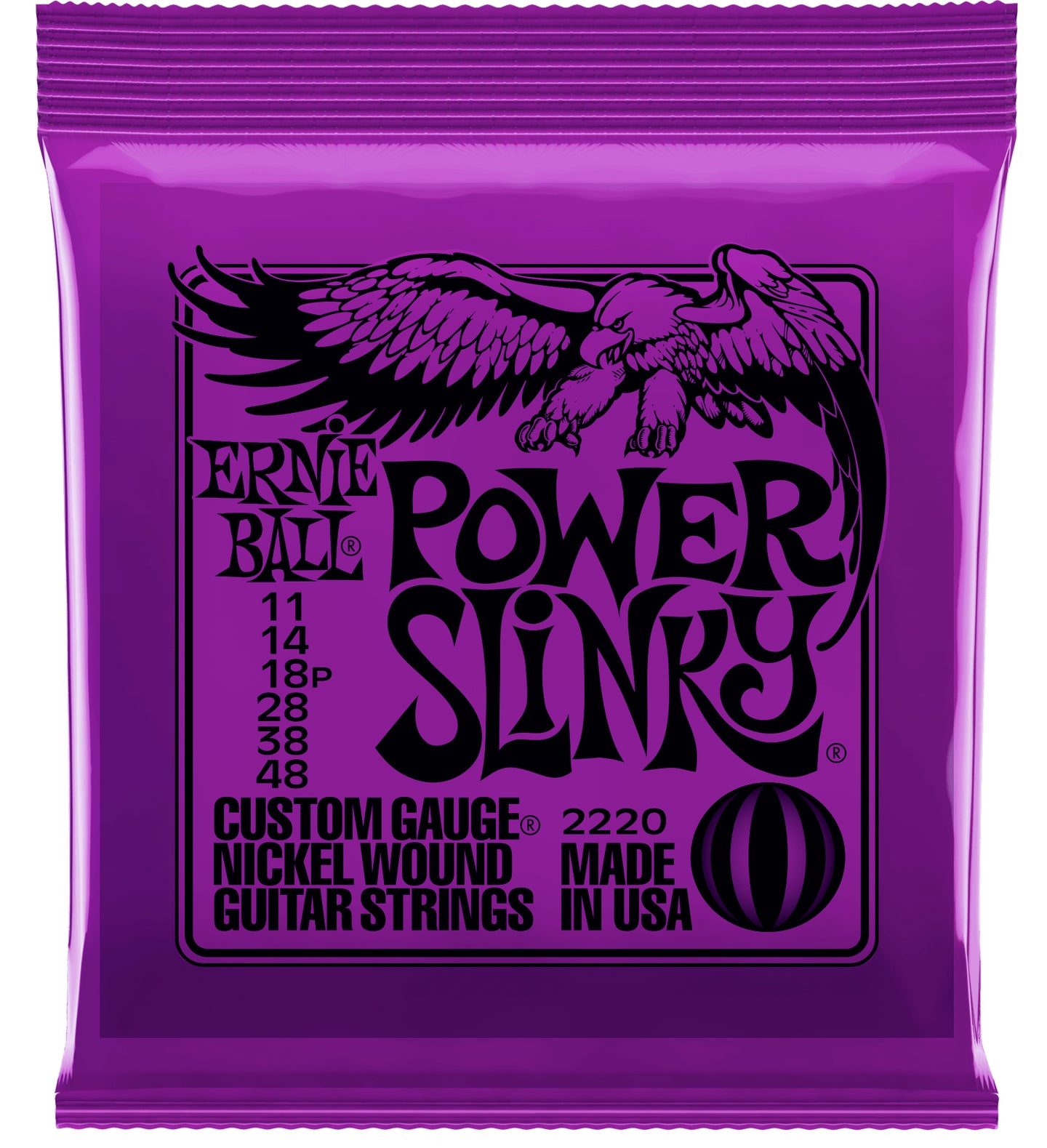 Power Slinky wound strings are made from nickel-plated, steel wire wrapped around a hex-shaped steel core wire.
